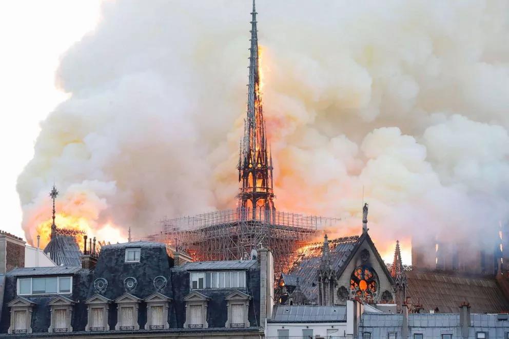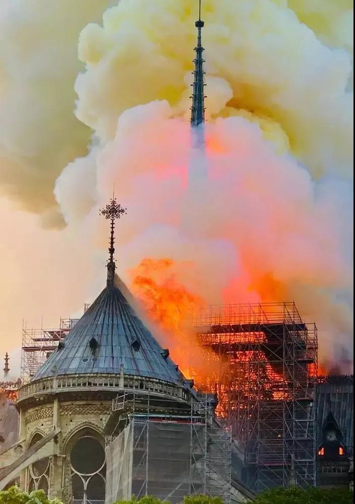 這座有著850年歷史的,經(jīng)歷了巴黎的歷史變遷,見證了拿破侖的加冕、拿破侖三世的婚禮,在歷史的長河里見證了數(shù)次戰(zhàn)爭依舊屹立不倒,而昨夜,倒在了一片火光之中。