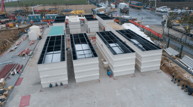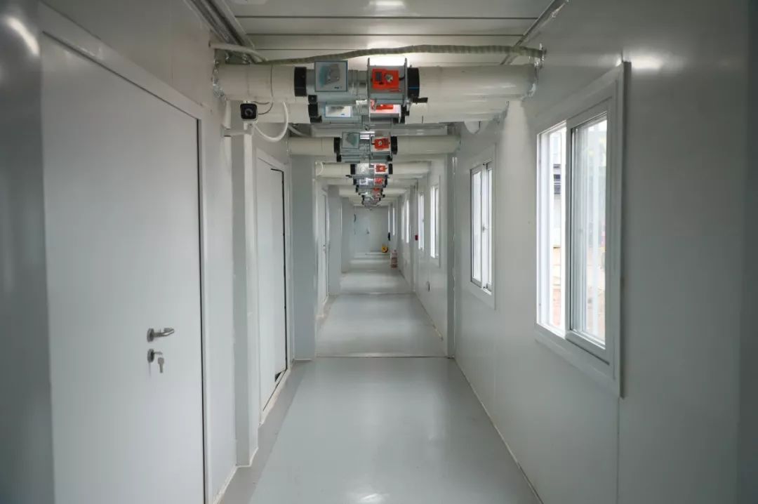 2月2日,隔離區完成吊裝1514間箱式板房。