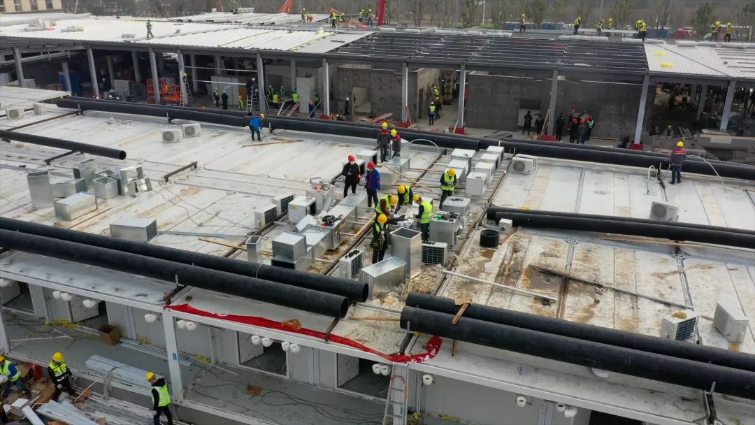 1月29日,醫護住宿區鋼結構基本全部完工,并完成電力配套工程建設,醫院全部通電。