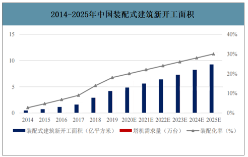 2014-2025年中國裝配式建筑新開工面積