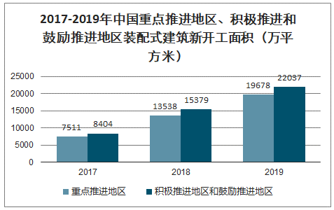 2017-2019年中國重點推進地區、積極推進和鼓勵推進地區裝配式建筑新開工面積