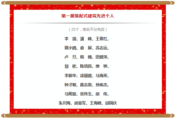希望獲得第一屆裝配式建筑優秀企業、先進集體和先進個人榮譽稱號的單位和同志,珍惜榮譽,再接再厲,起好榜樣的帶頭作用,為促進裝配式建筑建設事業作出新的貢獻。