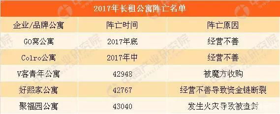 伴隨長租公寓的“混戰”越發激烈,洗牌和重組不可避免。或因經營管理不善,或因擴張房源資金需求,或因巨大的消防事故,五家長租公寓企業/品牌在2017年陣亡,成為行業蓬勃起勢期的一段歷史。