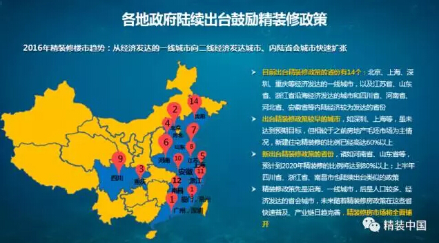 2016年各地陸續(xù)出臺(tái)全裝修、精裝修的相關(guān)條例,在綠色化、住宅產(chǎn)業(yè)化的推動(dòng)下,“毛坯房”將逐步退出房地產(chǎn)的歷史舞臺(tái)。