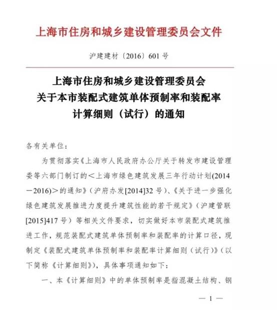 切實(shí)做好本市裝配式建筑推進(jìn)工作,規(guī)范裝配式建筑單體預(yù)制率和裝配率的計(jì)算口徑,現(xiàn)制定《裝配式建筑單體預(yù)制率和裝配率計(jì)算細(xì)則(試行)》