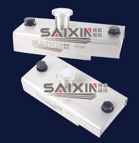 SX-1000 磁盒吸附力達(dá)到1000公斤以上,外觀尺寸20*9.5*4CM,外殼為不銹鋼材質(zhì),根據(jù)客戶需求,1000公斤磁盒也可以把寬度做到90MM,可以適應(yīng)于100MM鋼筋間距,我們?cè)O(shè)計(jì)了簡單便捷的開關(guān)按鈕,使用撬棍可以很輕松的控制磁力。真正做到工作時(shí),磁力100%發(fā)揮作用,磁力系統(tǒng)閉合時(shí),人工可以很輕松的提起或者移動(dòng)磁盒。