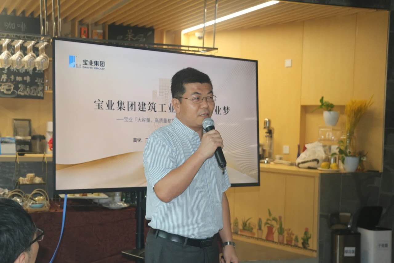接著,寶業(yè)集團(tuán)上海公司總經(jīng)辦副主任張榮先生進(jìn)行了題為“寶業(yè)建筑工業(yè)化制造業(yè)集群——工業(yè)、美學(xué)、綠色產(chǎn)業(yè)鏈的融合共生”的主題發(fā)言。他從汽車的生產(chǎn)來(lái)說(shuō)明裝配式建筑,指出不能簡(jiǎn)單地理解PC,隨著建筑行業(yè)的發(fā)展,建筑美學(xué)越來(lái)越上升至生活美學(xué)方面。建筑行業(yè)不僅僅標(biāo)準(zhǔn)化組合式的工業(yè),更是工業(yè)美學(xué)和產(chǎn)業(yè)的完美統(tǒng)一。