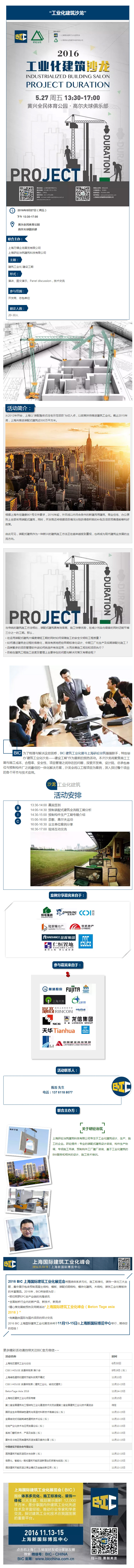 BIC 亞洲國際建筑工業化展覽會 (簡稱:BIC)自2013年舉辦以來,依托上海萬耀企龍展覽有限公司的國際化背景,立足華東、輻射亞太。貫徹“市場主導,政府引導”的基本原則,以“裝配式建筑結構體系、施工裝備和工藝、建造智能化技術”三大核心內容,覆蓋科研、設計、生產加工、施工裝配、運營等建筑全產業鏈。是業內公認的企業展示新技術、新材料、新工藝、新設備的國際性交流洽談及采購貿易平臺。