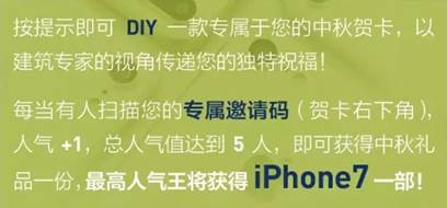 ![]() 小編代表BIC 上海國際建筑工業(yè)化展覽會主辦方, 提前祝各位業(yè)內(nèi)小伙伴, 闔家團(tuán)聚、溫馨康泰、 花好月圓、幸福美滿! 中秋快樂!!! ![]() 自古以來,“中秋”與“建筑”的淵源頗深, 古有嫦娥奔月, 廣寒宮里“中秋夜語寄相思,千里試問君安否?” 更有無數(shù)文人墨客寄情于山水建筑之間, 借樓閣庭院抒發(fā)思鄉(xiāng)之情。 那么,作為一個現(xiàn)代“建筑人”, 在這樣一個特別的節(jié)日里, 要如何運用 建筑人的獨特視角、建筑人的專業(yè)身份, 向家人、朋友、同事及合作伙伴 傳遞一份屬于您的建筑情懷呢? BIC 中秋特制, 當(dāng) “建筑” 邂逅 “中秋” 系列賀卡, 讓建筑圈的朋友們告別傳統(tǒng)送祝福的方式, 親手DIY一款專屬于建筑人的中秋賀卡, 更重要的是,這份祝福可能來自 “世界各地” 噢~ ![]() 將賀卡轉(zhuǎn)發(fā)至朋友圈,聚集人氣, 即可獲得中秋禮品 更有大獎 i-Phone7 豪禮相送! ![]() 極賦創(chuàng)意的你,怎能錯過在朋友圈大顯身手的機會? 長按下圖二維碼,即可體驗! ![]() ![]() ![]() 沒時間解釋了,想要一部 iPhone 7 ! ![]() 每當(dāng)有人掃描您的專屬邀請碼(賀卡右下角), 人氣+1,總?cè)藲庵颠_(dá)到5人,即可獲得中秋禮品一份, 最高人氣王將獲得 iPhone7 iPhone7 iPhone7!!! 重要的事情說三遍! 一棟建筑,一種信仰, 一份堅持,一段情懷, 今年中秋, 來為您的建筑夢想挑選一張合適的賀卡吧, 讓建筑為您代言,替您發(fā)聲, 凝聚屬于建筑人的氣質(zhì)與靈魂! ![]() |