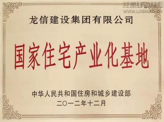 第三階段為2010年開始與日本鹿島合作進行預制裝配式建筑的研發及應用,2011年獲“國家住宅產業化基地”。2015年獲江蘇省首批“集成應用類建筑產業現代化示范基地”及引導資金。龍信集團被推舉為首屆“江蘇省產業化發展聯盟”理事長單位。