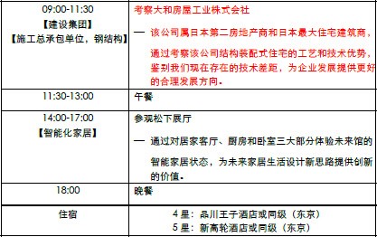 為期7天的日本建筑工業化考察之旅將包含6家全球行業頂尖企業的參觀和訪問,通過考察這些同類型的工廠及項目施工的全過程,近距離感受和學習國外建筑業在面臨轉型升級時的卓越技術創新實踐和高效管理經驗,有助于國內企業對項目的資金投入體系、管理制度、技術支持、技能培訓等深入思考及全面提升。