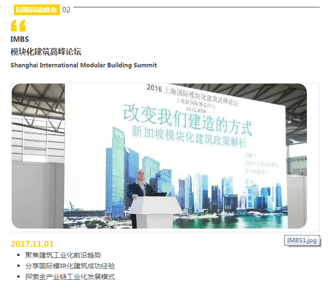 作為“世界城市日”重要活動之一,“2017 BIC亞洲國際建筑工業化展覽會”聯合“2017上海國際城市與建筑博覽會” 同期舉辦,共同呈現“有溫度的城市”。