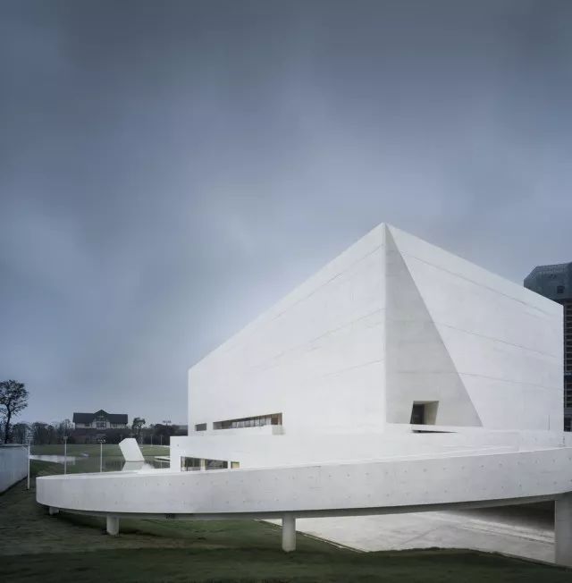 主體是由白色清水混凝土一次性現(xiàn)澆而成,無論墻體,頂棚、地面或室外廣場、平臺、棧道都只使用清水混凝土一種材料,做法本身十分具有超越性。
