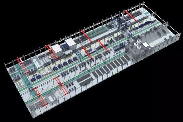 規劃三跨鋼結構廠房,提供工廠前期整體規劃,全自動綜合墻板生產線一條、固定模臺生產線一條,同時規劃鋼筋加工車間以及PC攪拌站。