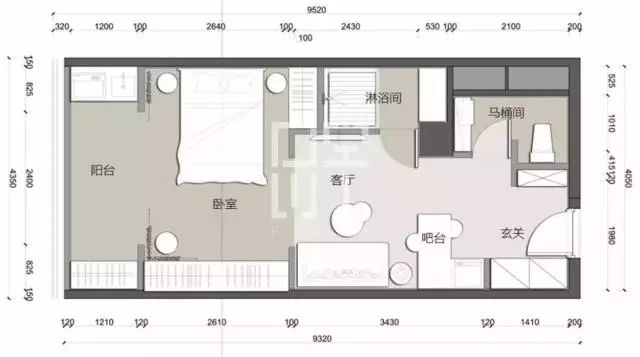 戶型①:23㎡ 戶數(shù):9戶