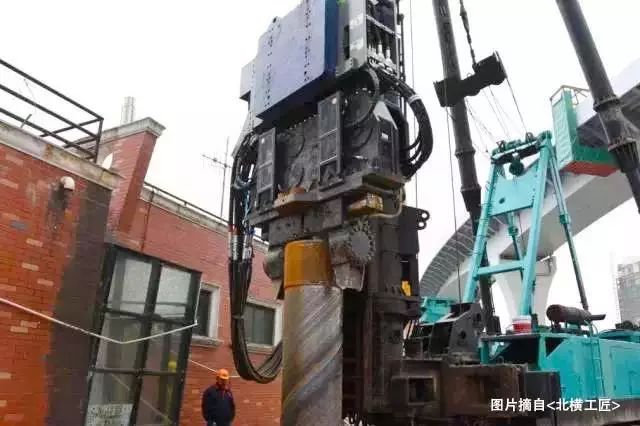 北橫通道新建二期I標天目路高架工程地處上海火車站商圈鬧市區。高架橋梁上跨軌交1號線,承臺距離軌交1號線的水平凈距離僅為2.5米。 箱涵段上跨運行軌交13號線隧道,箱涵下MJS加固與13號線垂直距離僅1米,軌交隧道對MJS加固及承臺開挖引起的底層變形極為敏感。高架鋼管如果采用普通樁錘施工,產生的共振易造成地表及建筑屋面松動和開裂,這勢必影響地下管線、地鐵及周圍建筑。項目團隊采用了新技術新設備,70RF免共振錘。其震動對于臨近居民幾乎小到無法察覺,打樁時基本不擾民,還能大大提高鋼管樁施工質量和效率。