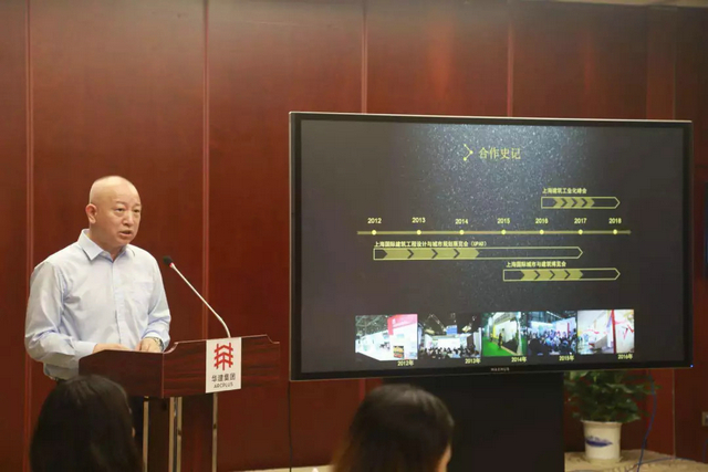 簽約儀式上,華建集團(tuán)副總工程師及上海國際建筑工業(yè)化峰會專家委員會學(xué)術(shù)委員會副主任王平山與VNU總監(jiān)及上海國際建筑工業(yè)化峰會專家委員會工作秘書處秘書長國風(fēng)對當(dāng)前上海國際建筑工業(yè)化峰會工作進(jìn)度作了匯報(bào)。王平山主任在匯報(bào)中對往屆峰會及三方的合作歷程作了回顧,并介紹了2018年峰會結(jié)構(gòu)及主要議題。