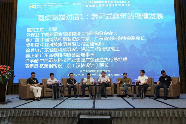 8月25日下午至26日,本屆展會主題論壇“2018第二屆中國國際裝配式建筑高峰論壇暨裝配式建筑與房地產(chǎn)發(fā)展論壇”在廣州威斯汀酒店舉辦,600多會議代表參加了論壇,現(xiàn)場座無虛席。住建部科技與產(chǎn)業(yè)化發(fā)展中心規(guī)劃發(fā)展處處長梁浩、中國工程院院士岳清瑞、清華大學建筑設計研究院副院長候建群、中建科技總建筑師樊則森、中國鋼結構事業(yè)資深專家鮑廣鑑、中國建筑金屬結構協(xié)會鋼結構分會會長黨保衛(wèi)等40多名專家領導圍繞“裝配式建筑穩(wěn)健發(fā)展及全產(chǎn)業(yè)鏈整合”的主題,探討行業(yè)如何破局,哪種結構體系將成為市場主導,揭示房地產(chǎn)商如何玩轉裝配式建筑,激辯如何整合產(chǎn)業(yè)鏈才能推動行業(yè)發(fā)展,探索建筑建材更加密切的融合發(fā)展之道。