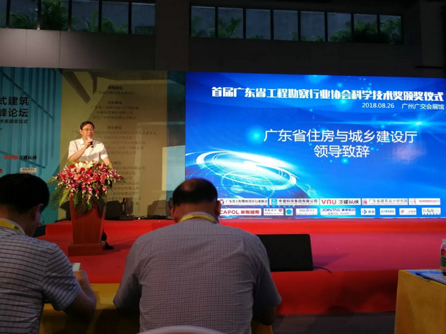 8月26日,首屆廣東省工程勘察設計行業(yè)協(xié)會科學技術獎頒獎儀式在展館舉行,廣東省住建廳科信處處長廖江凌先生出席會議并致辭,并親自為特等獎獲獎企業(yè)頒獎。
