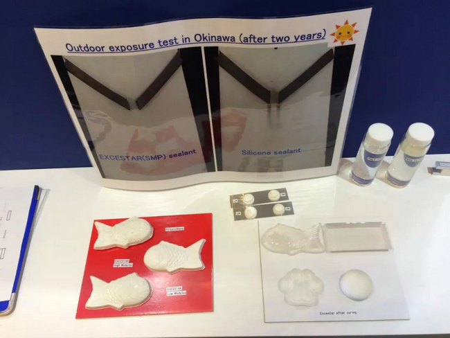 一款名為EXCESTAR的硅烷改性聚醚產品,這款產品是AGC獨有的高分子化學技術研發(fā)的,以超高分子量聚醚為主鏈、甲氧硅基封端的新型高分子液態(tài)聚合物,加入催化劑后常溫狀態(tài)下會與空氣中的水反應形成彈性體。作為一種用于生產密封膠、膠粘劑等產品的樹脂原料,在多樣化的領域被廣泛應用。